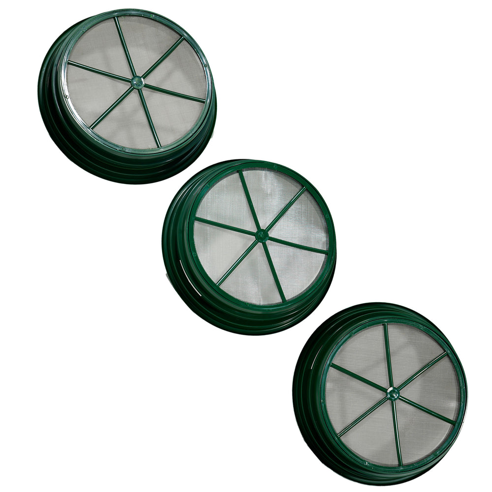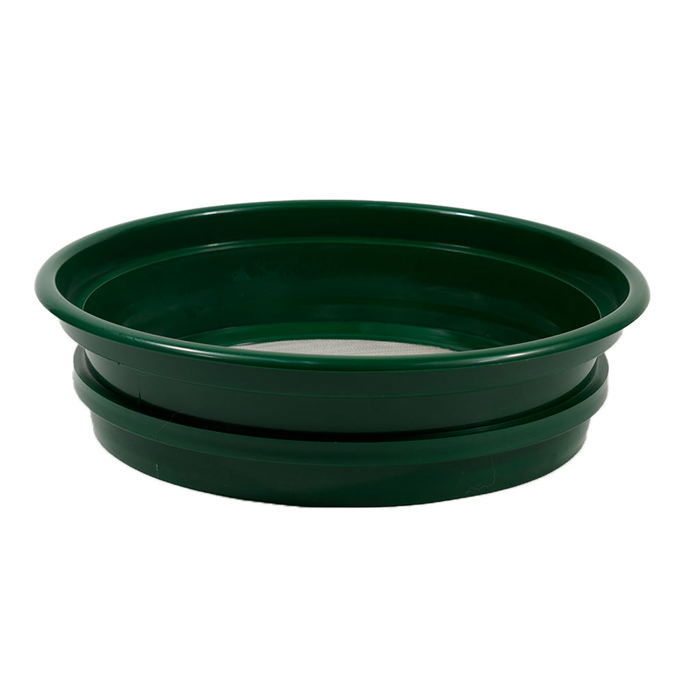 These mesh classifiers are expertly designed to securely fit on a standard 5-gallon bucket and can be used with a 14-inch gold pan. The classifiers have a stackable configuration and are a generous top diameter of 13-1/4" inches and a bottom diameter of 11 inches