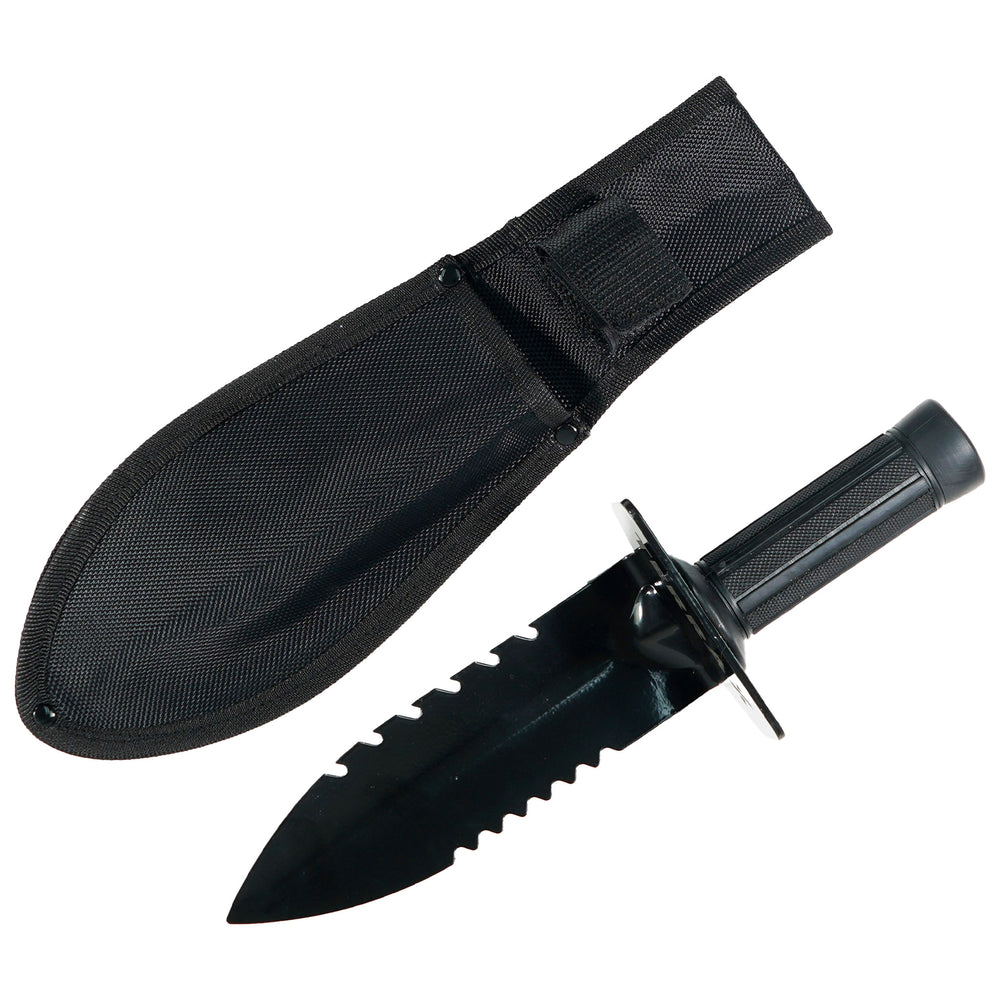 Elevate your outdoor pursuits with the TerraX Heavy Duty Hand Digger - Shovel with Serrated Edges, an essential tool for professional landscaping, gardening, relic hunting, metal detecting, and gold prospecting. Engineered with precision, this digging knife features a sleek black color and durable steel construction, ensuring reliability in various environments. Its serrated edges efficiently tackle a range of tasks, while the rubber handle provides long-lasting comfort. Weighing just 14 ounces, it offers a lightweight yet durable design. With the belted sheath included, you can conveniently carry and access your hand digger during outdoor adventures. Unleash its versatility and enjoy seamless outdoor exploration.