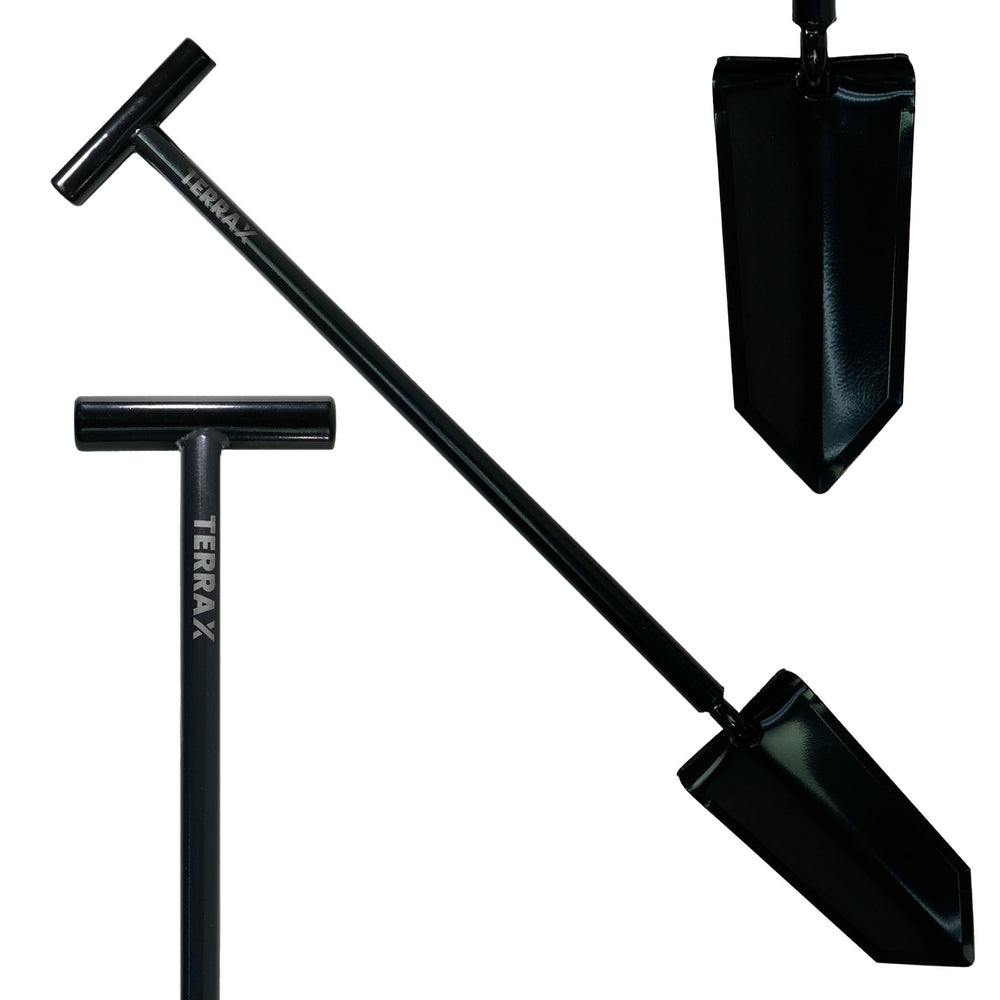 Unleash the power of precision with the TerraX Master Digger Shovel featuring a 6-inch T-Handle design. Crafted from robust steel, this shovel is a must-have tool for treasure hunters and metal detecting. Ideal for professional landscaping, gardening, relic hunting, metal detecting, and gold prospecting - Durable. The sleek black color not only adds a touch of sophistication but also ensures durability in the field. With an overall length of your choice of 34 or 36 inches, the TerraX Metal Detecting Shovel provides the perfect reach for uncovering hidden treasures. The 9.5-inch length and 5-inch width of the cutting edge offer a generous surface area, making it ideal for efficient excavation. Equipped with a pre-sharpened edge, this shovel excels in cutting through various soils with ease. The T-Handle is a generous length of 6 inches, ensuring a firm and secure grip. Elevate your metal detecting experience with the TerraX Metal Detecting Shovel – a reliable companion for uncovering artifacts and treasures on your exciting expeditions.